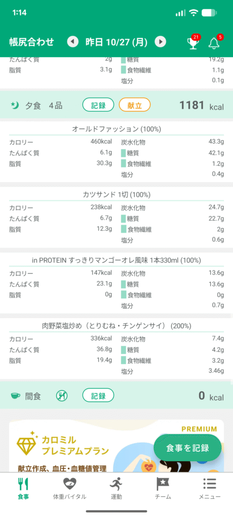 初日からカツサンドやらドーナツやら食べて痩せる気のない食事してますが、嘘はつかずやっていこうと思います。朝昼のたんぱく質を増やして、脂質を減らすと良さそうです。夜は鶏肉を煮るのが良いかな。なるべく野菜は色んなものをたくさんとりたい。