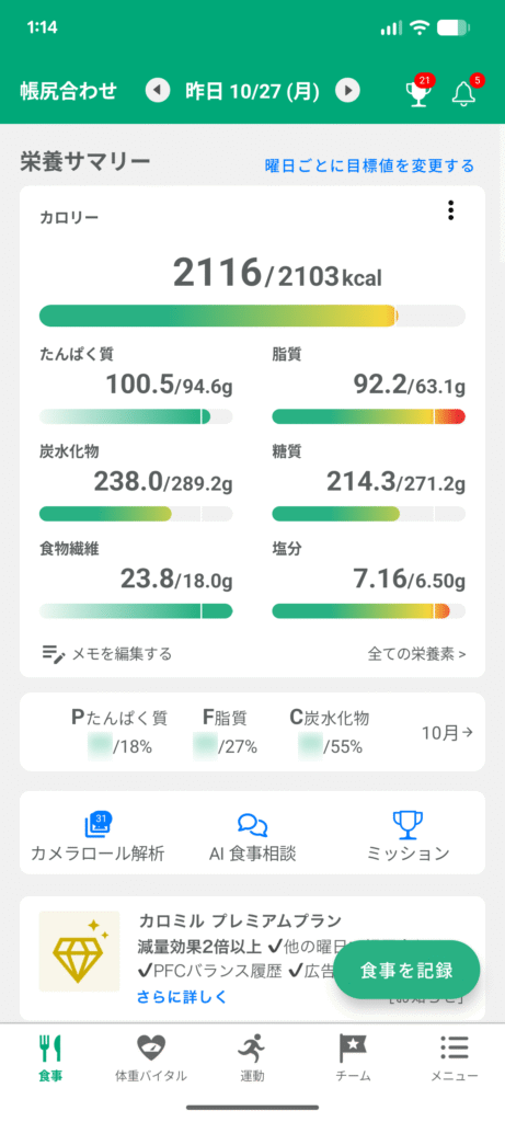 今日から食事の記録をつけていこうと思います。体脂肪率が20%を超えているので、15%、そこまでは行けずとも18%くらいまで落としていきたいです。各栄養素の摂取目標は上記の通り。体重を計測しながら進めていこうと思います。モチベが続く限りの試み。